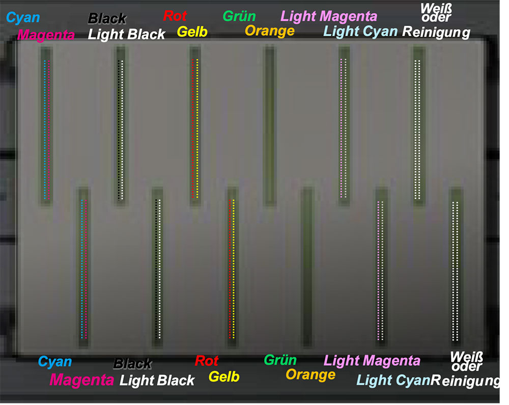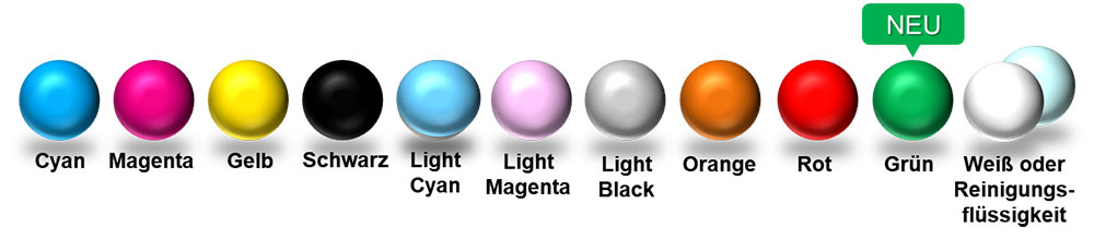 | Tintensets: | CMYK, Lc, Lm, Lk, Or, R, Gr, Wh | ||